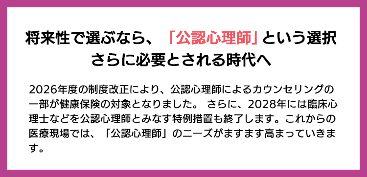 基本的に、心理学科を卒業後、本学大学院を含む公認心理師を養成する大学院を修了することで受験資格が得られます。