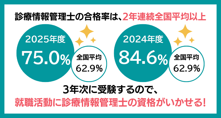 医療マネジメント学科の診療情報管理士合格率は、2023年度が89.8%、2022年度が77.5%と、全国平均以上。