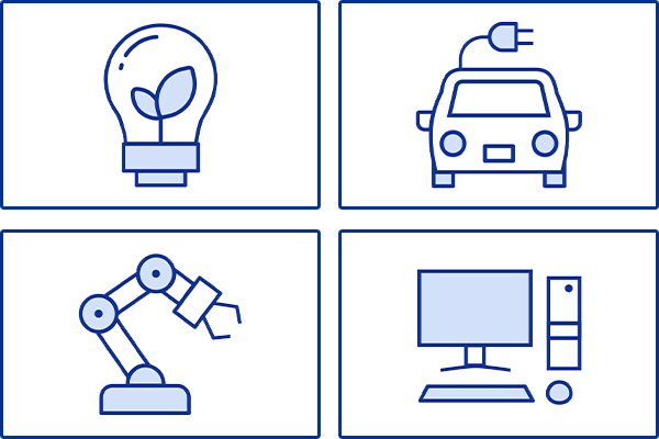 私たちは「エネルギー・環境・医療機器」「自動車・車両関連機器」「白物家電・産業用インバータ機器」「情報通信機器」の重点4市場に注力するとともに、海外市場では中国・インドをはじめとする新興国において販売網の拡充や、生産力や技術開発力を強化し、現地調達の推進や生産性向上により原価低減への取り組みを進めています。
