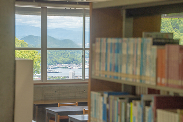 ドリンク持ち込みOK、最新文庫、専門書、洋書、新聞、マンガ、雑誌など様々な本が45,000冊そろっています。生徒はタブレットを使って読みたい本の在庫有無も確認できます。本好き、マンガ好き、専門書を読みたい方、海の見える図書館にぜひ一度お越しください。